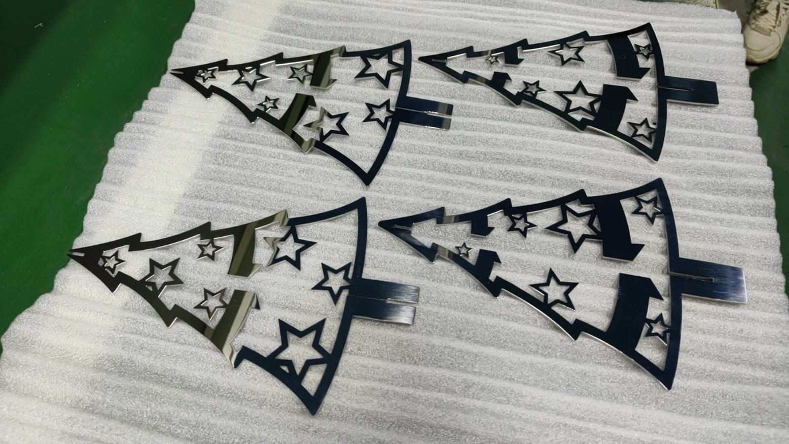 Sheet metal Christmas trees, however, are a different ballgame. They aren’t necessarily more complex than the parts and components created for Duvelco, but the trees that Goodwin PLC requested are highly detailed – with chemically etched surfaces, polished mirror finishes, stainless steel sheet metal tops, brass sheet metal bases, and deburred edges. Perhaps most importantly, the trees – all 1,000 of them – needed to be shipped to Goodwin PLC quickly, so that the company could deliver them to its customers before Christmas.