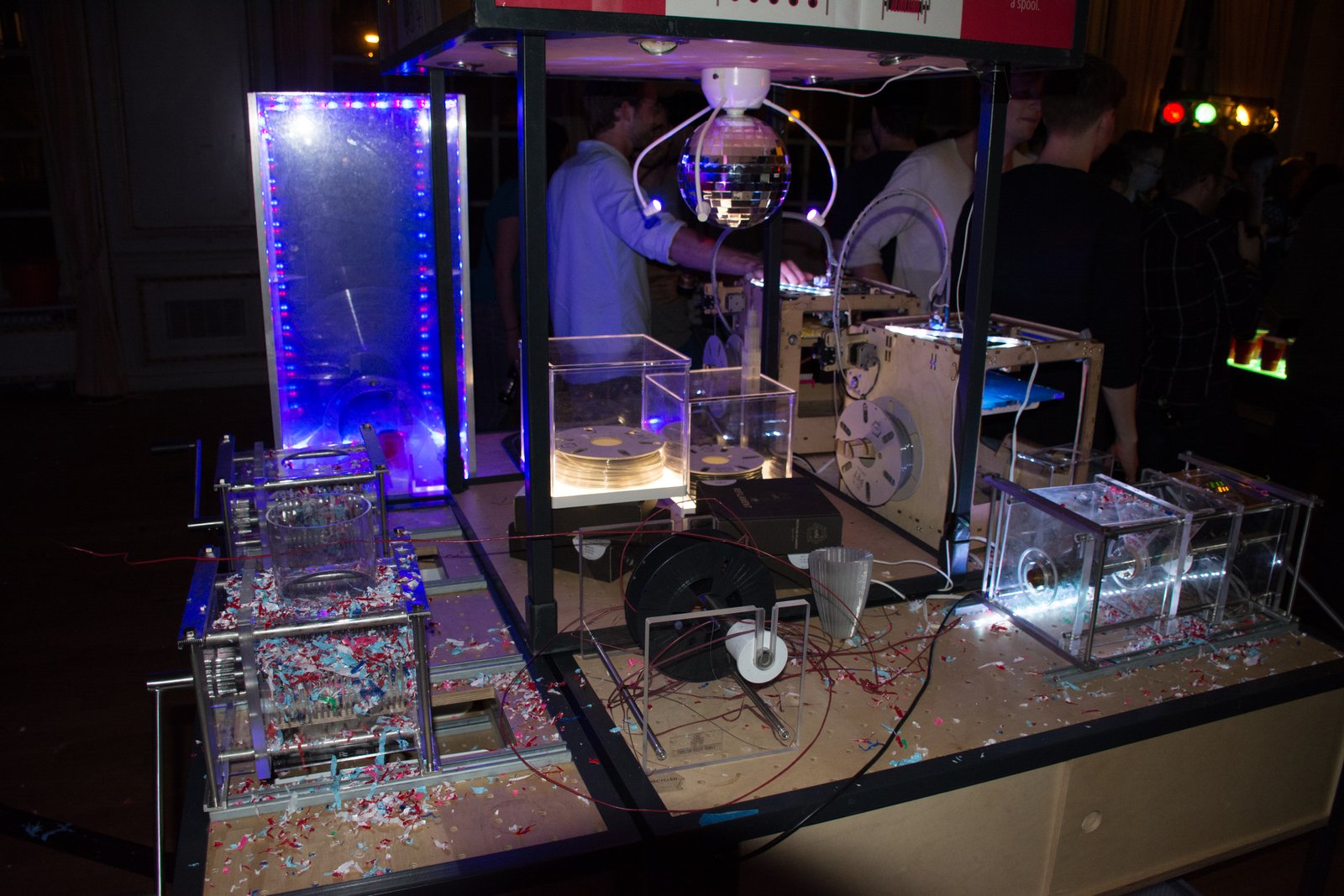It was an action-packed party, where we got to showcase a versatile mix of 3D printing projects.The show stopper was of course the interactive 3D printed beer pong table, which @Linda_Zouad built until the very last minute. Yes, she rocks! Things got so crazy at some point, that a bunch of dudes carried the table upstairs, where the DJ was