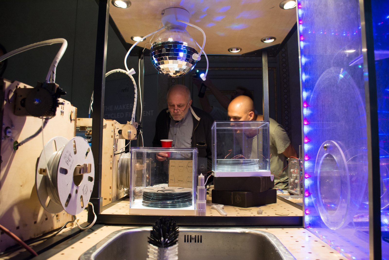 The talented peeps from Better Future Factory came with a dope recycling installation, which allowed everyone to turn their empty beer glasses into 3D printed rings. Win! There was even a disco ball attached to it!