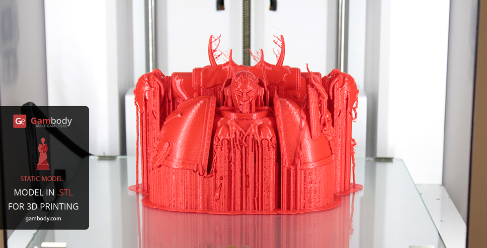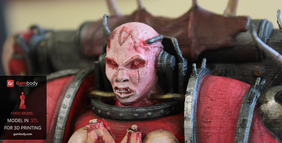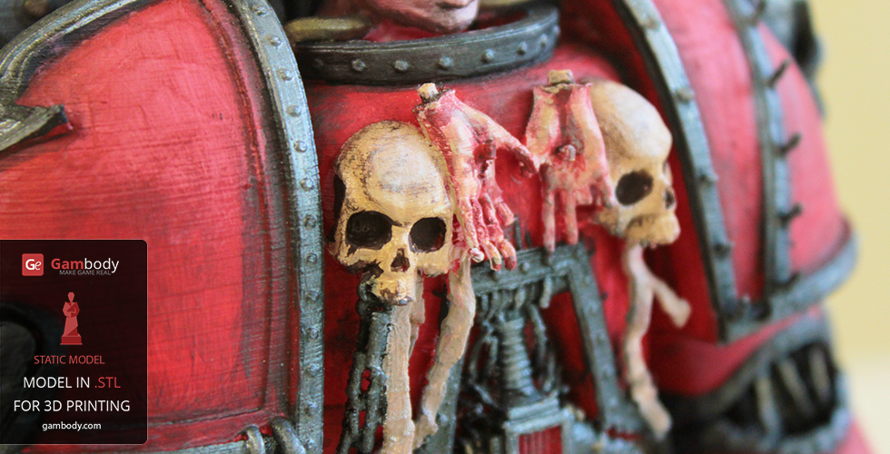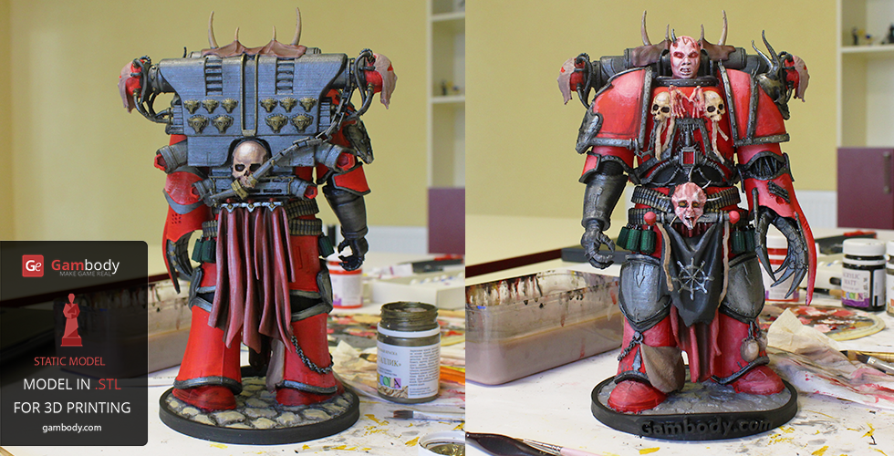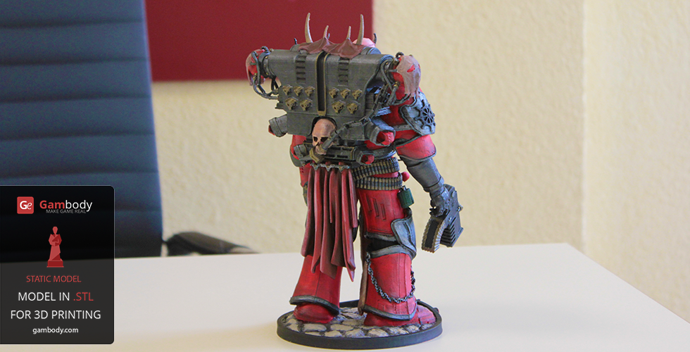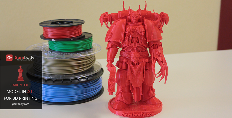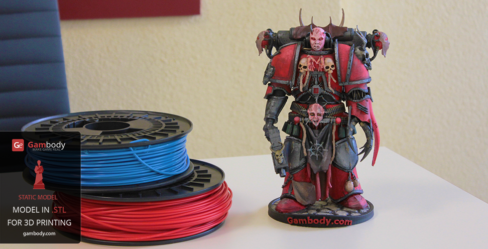 Chaos Space Marine 3D model - stands 25cm tall. The model is created in Autodesk Maya modelling program and is printed on Ultimaker 2 3D printer in red PLA material.