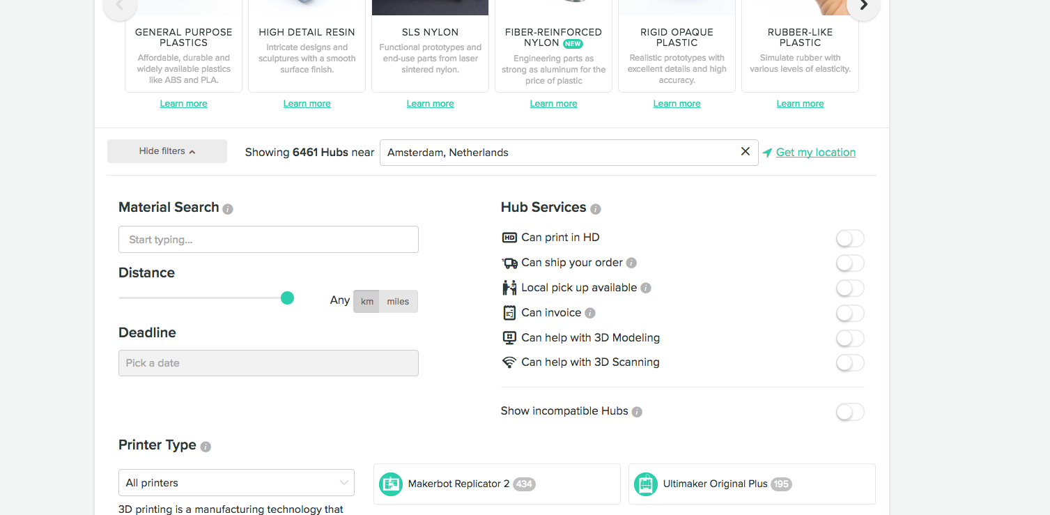 Here you can look for Hubs that are offering scanning service. In order to do it, you should click on “more filters” and select the voice “can help with 3d scanning”
