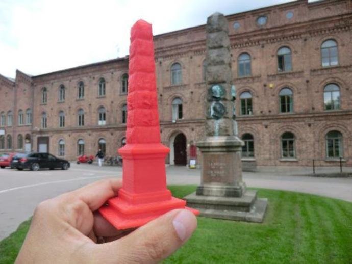 There is a large obelisk at the very entrance of the main building. We therefore chose that and used Autodesk 123D Catch to 3D-scan the object.