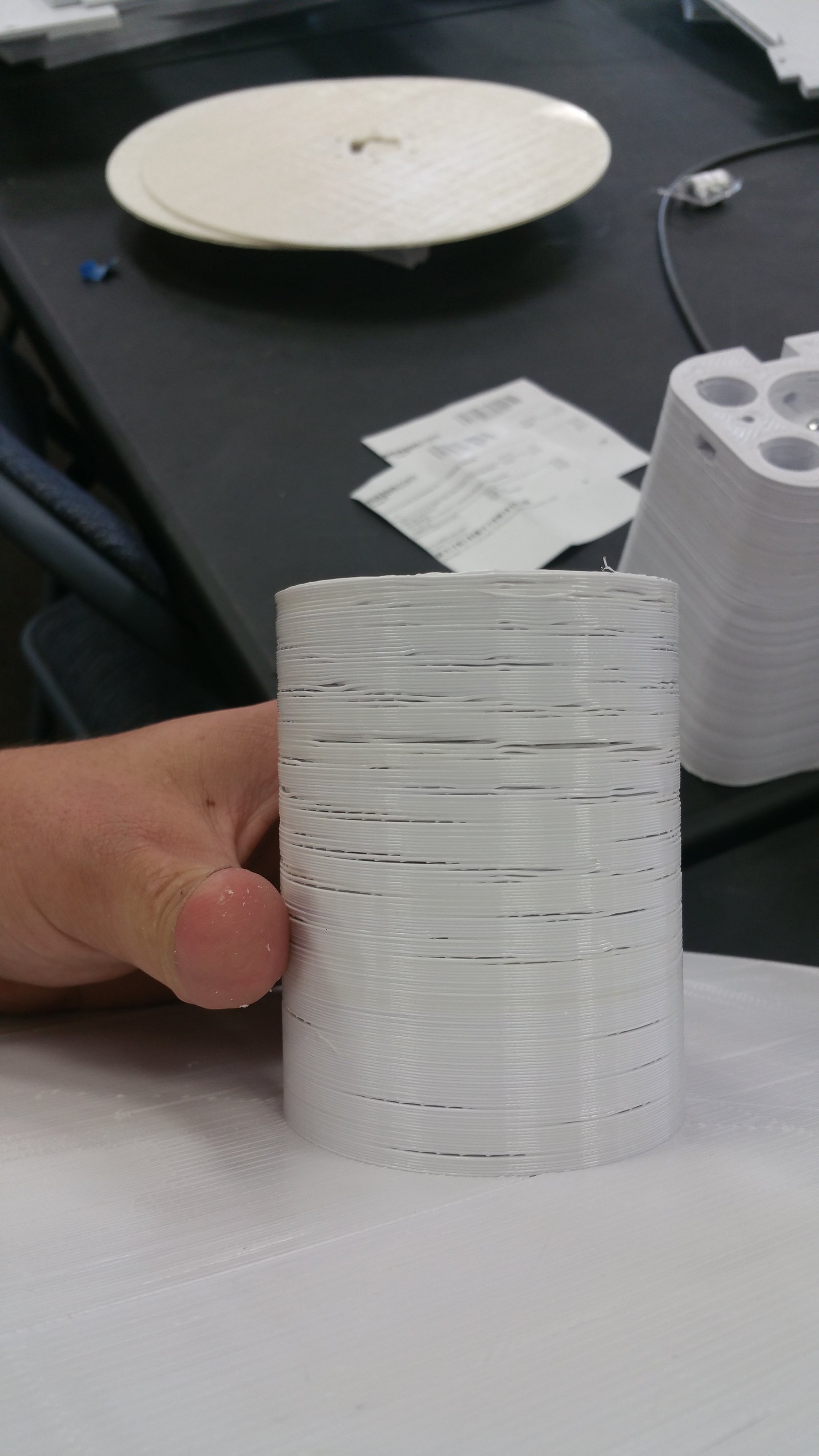 I have the Creality CR10 S5 and i am using ABS that i make (i dry the pellets and everything first and have a good spooling system there may be a bit of a diameter variation but nothing too bad). This print had great bed adhesion Bed: ~100 Nozzle: 270 we have built in enclosures for our printers and heat bulb above the bed that gets the ambient air around 46C inside the enclosure. I noticed that at the start there was under extrusion and i found the cause to be the drive gears not being able to pull the filament as easily through the enclosure as it should so after fixing that the bottom of the print was almost perfect but then up the neck it looks like under extrusion again. Any ideas?