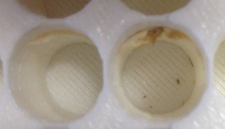 You can see the material that came off in the picture I provided. The “chunks” that fall off are somewhat dark, probably because being on that hotend for that amount of time.