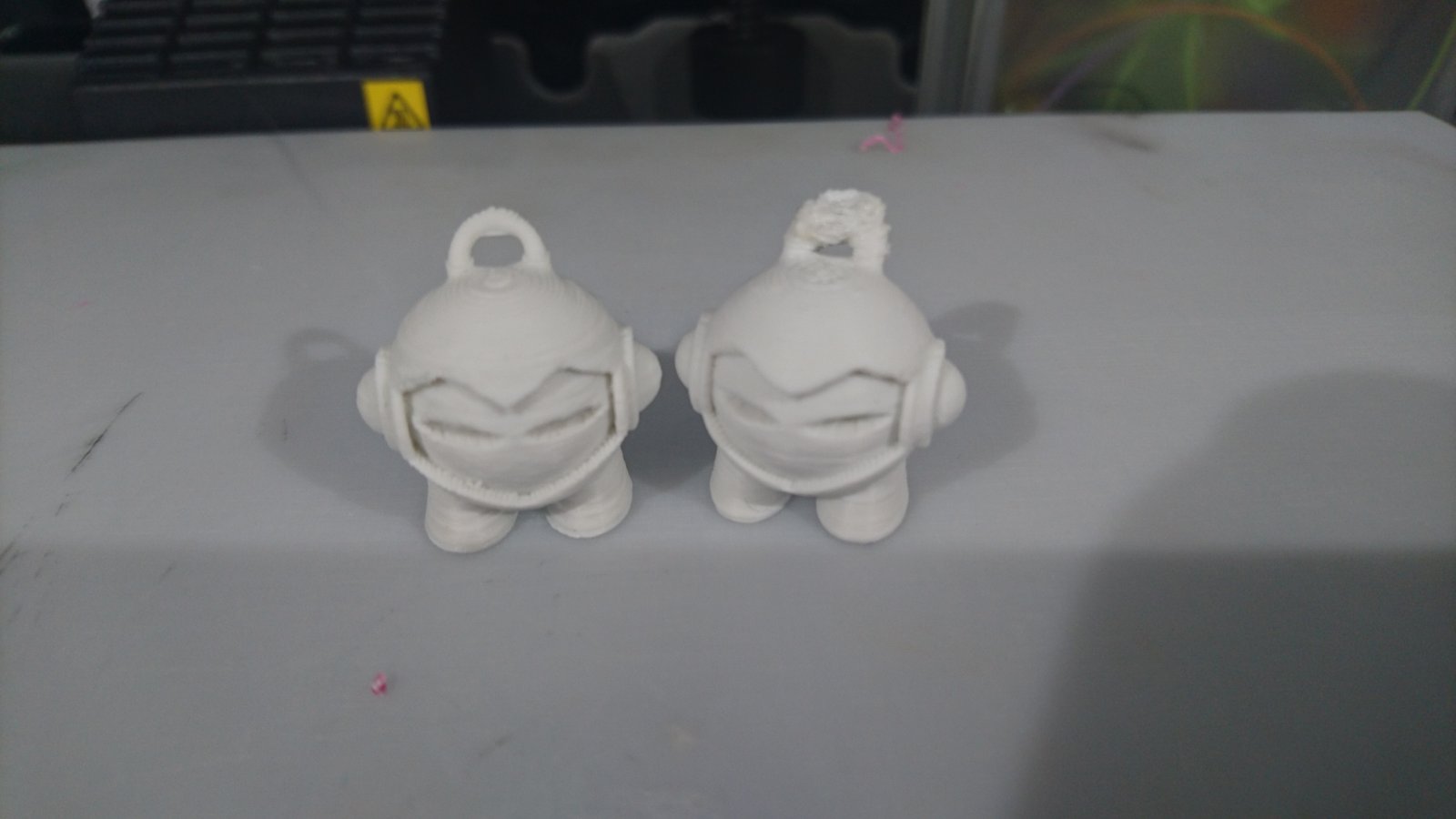 I’ve attached the full marvin in White ABS at 200 microns (CubePro, lower quality print but better hook (left) and Simplify 3D better print but bad hook (right), and my attempts at just the hook in Magenta ABS.