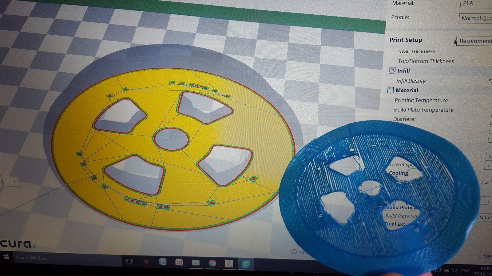 Hello, I made my own spool holder in Fusion 360. I then sliced the design in the latest version of Cura and noticed some random patterns in the first layer. The print head moves very fast between random points and extrudes little filament, the filament doesn’t have time to cool and gets dragged along with the head. The rest of the print turn out well but I don’t understand why Cura sliced the design in such a weird way.