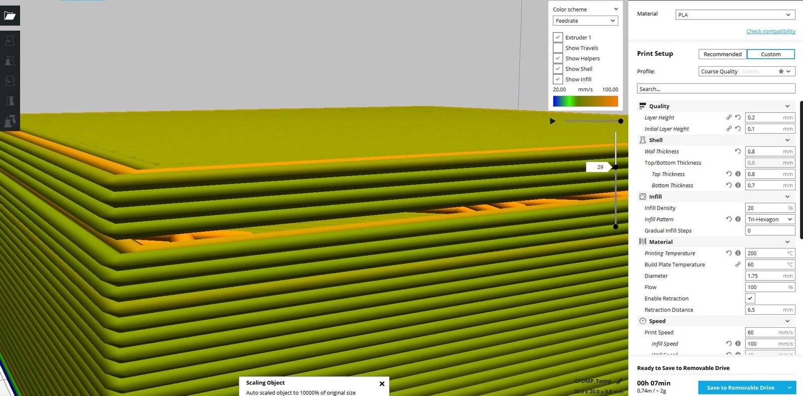 I am trying to print a hing in one piece. The gaps along the vertical faces are fine, however, the gaps on the top/bottom do not print correctly.