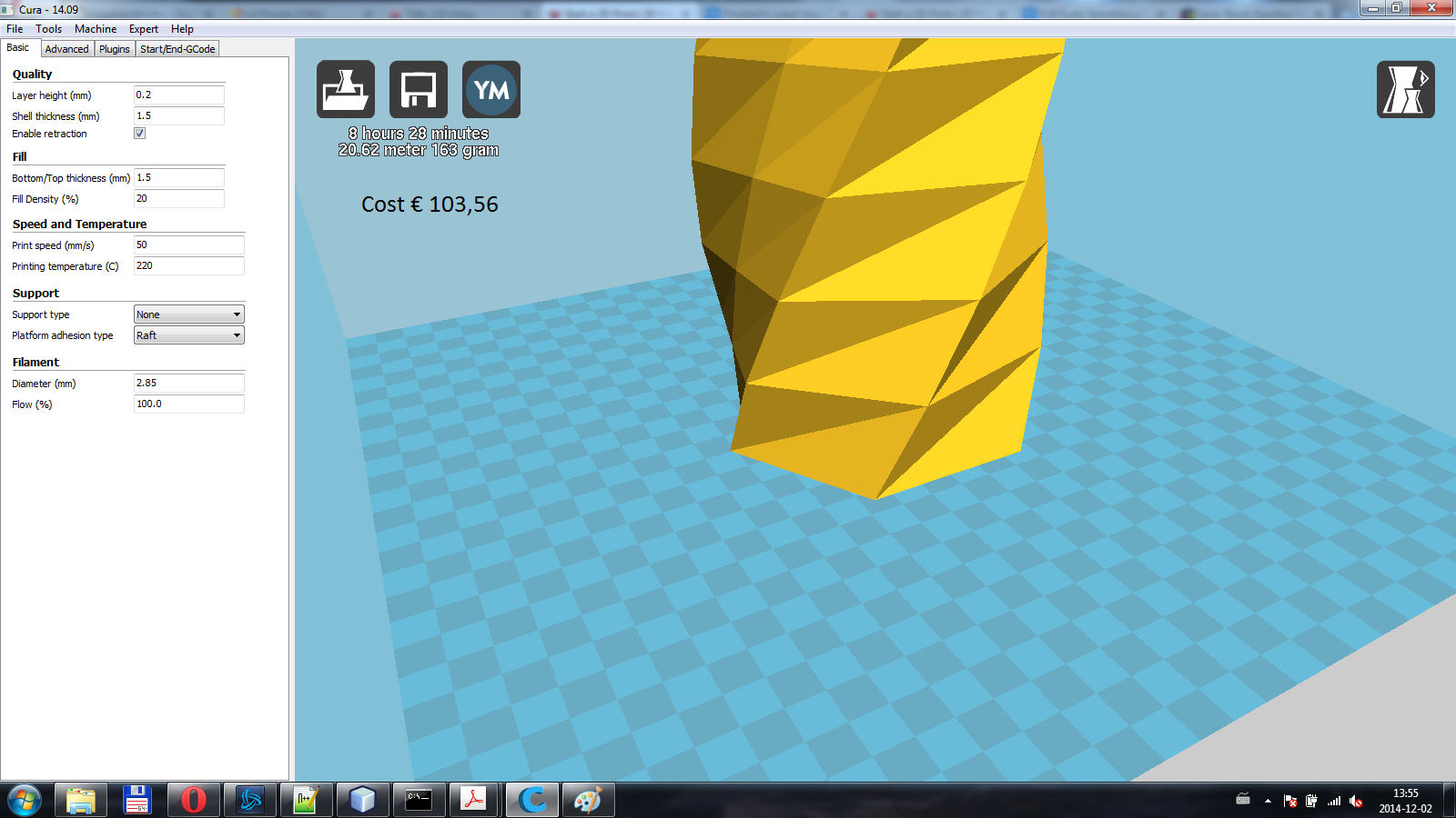 Hey @Faktuu we use 20% infill like you found, I believe we use the default settings for bottom and top thickness as well as the wall thickness. Maybe @Bram or @pedro can shed some light on this?