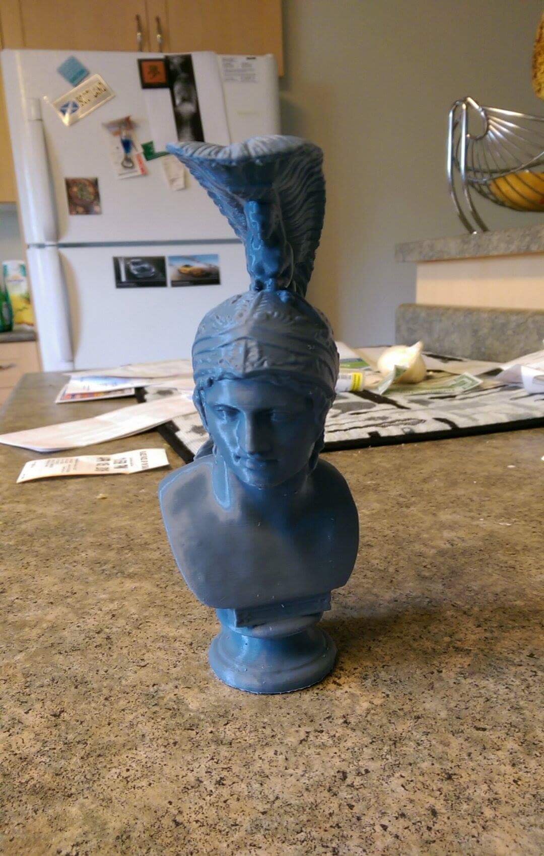 On that note, I’m never using Cura again for supports. Virtually all of the supports failed, but I let it keep printing because I was convinced as long as the supports on the helmet worked the print should work out after a bit of sanding. Thankfully, those supports did work, and the print finished. Granted, a fair bit more finishing work is required, but all in all it turned out pretty nice.