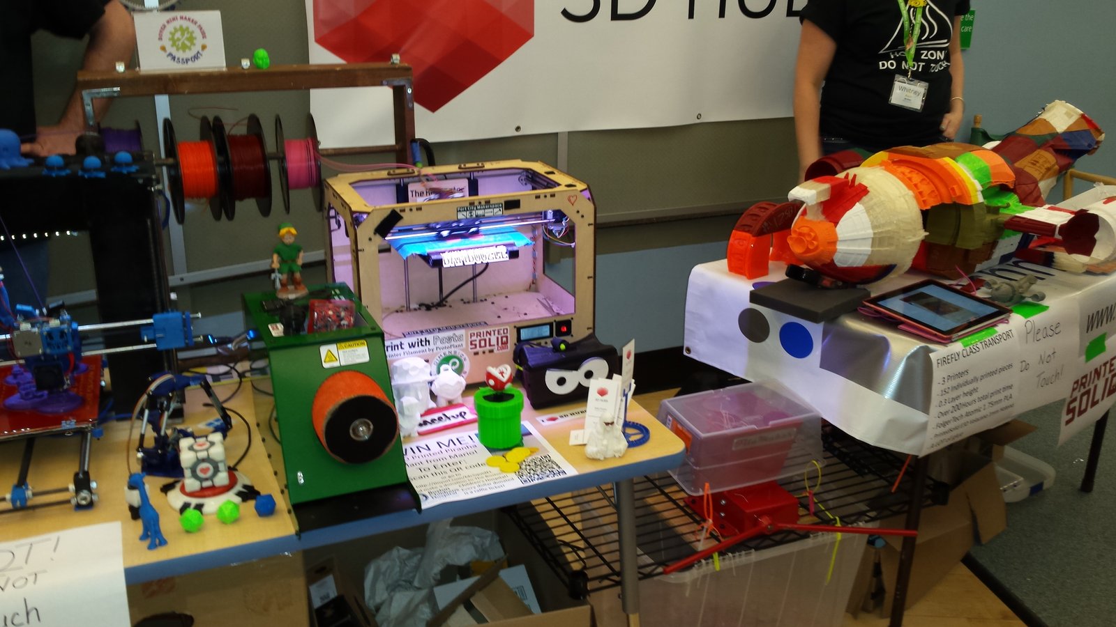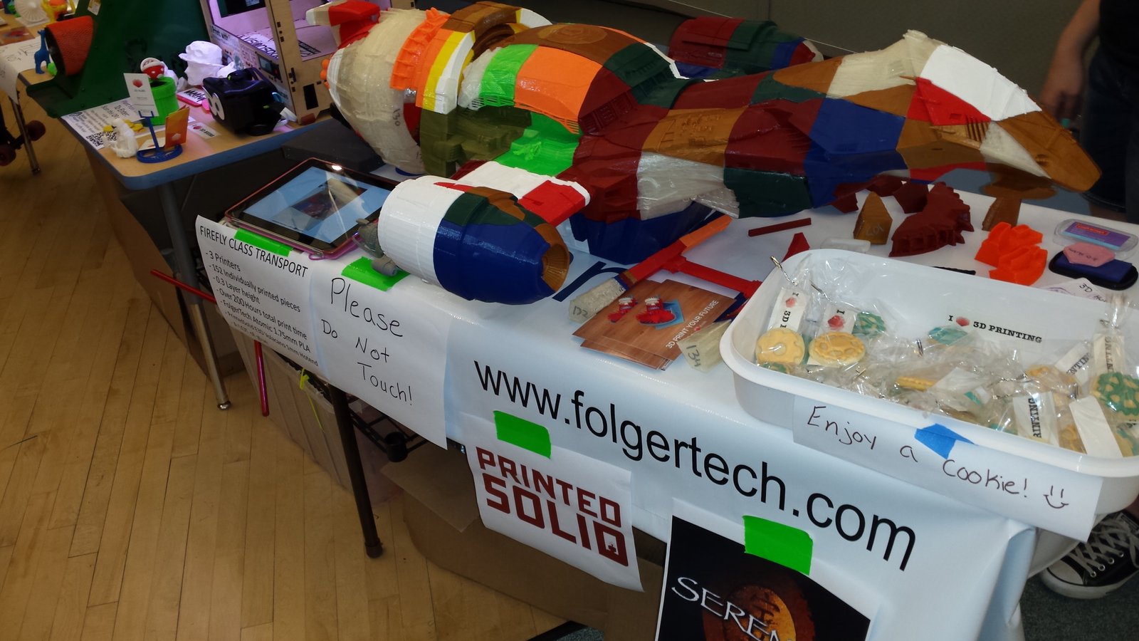 Thanks to everyone who made it to http://makerfairedover.com/ this weekend! Especially Boston Hub operator @ for bringing his Folgertech Prusa i3 and working the booth with me. There were non-stop questions from the influx of people all day long and the assistance was invaluable! He also brought our booth girl Whitney to stamp makerfaire passports for http://www.futuretechwomen.org/ participants and answering questions about our 48" model of the Firefly ship Serenity.