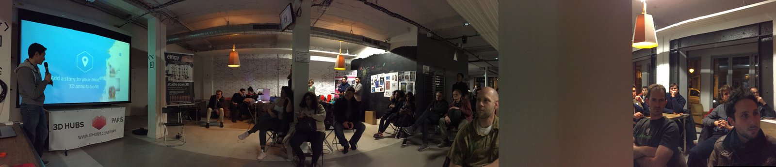 I first made a presentation of the 3d scanner technologies and showed exemple of scan applications. Then the cofounder of Sketchfab Pierre-Antoine Passet made a short presentation of the platform. After that I made a presentation of 3D Hubs.