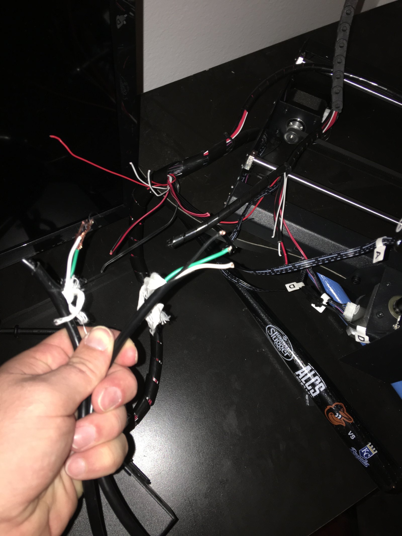 I need help! Don’t ask how, but my dog chewed through all the wiring going to the extruder. The problem is of all the wires there’s 2 plain red wires and two plain white wires. As a result I don’t know which reds to splice together. Same with the two whites. Does anyone have any suggestions? Ways to ring them out and figure it out that way?