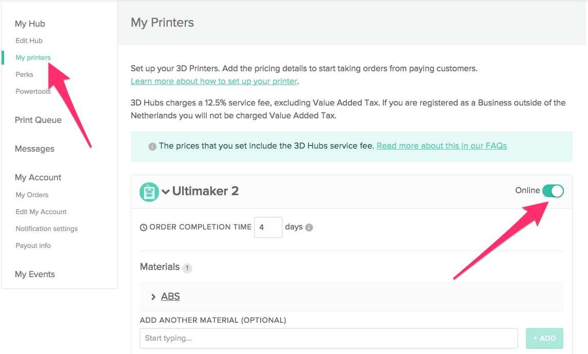 One situation that we regularly see on the platform is that a customer sends in an order only to get no reply from the Hub. When this occurs we’ll put your Hub automatically offline to prevent them from wasting valuable time in getting his/her model printed. After that, we’ll notify you about this via email, so that you can put your printers back online whenever you’re ready to get back to printing.
