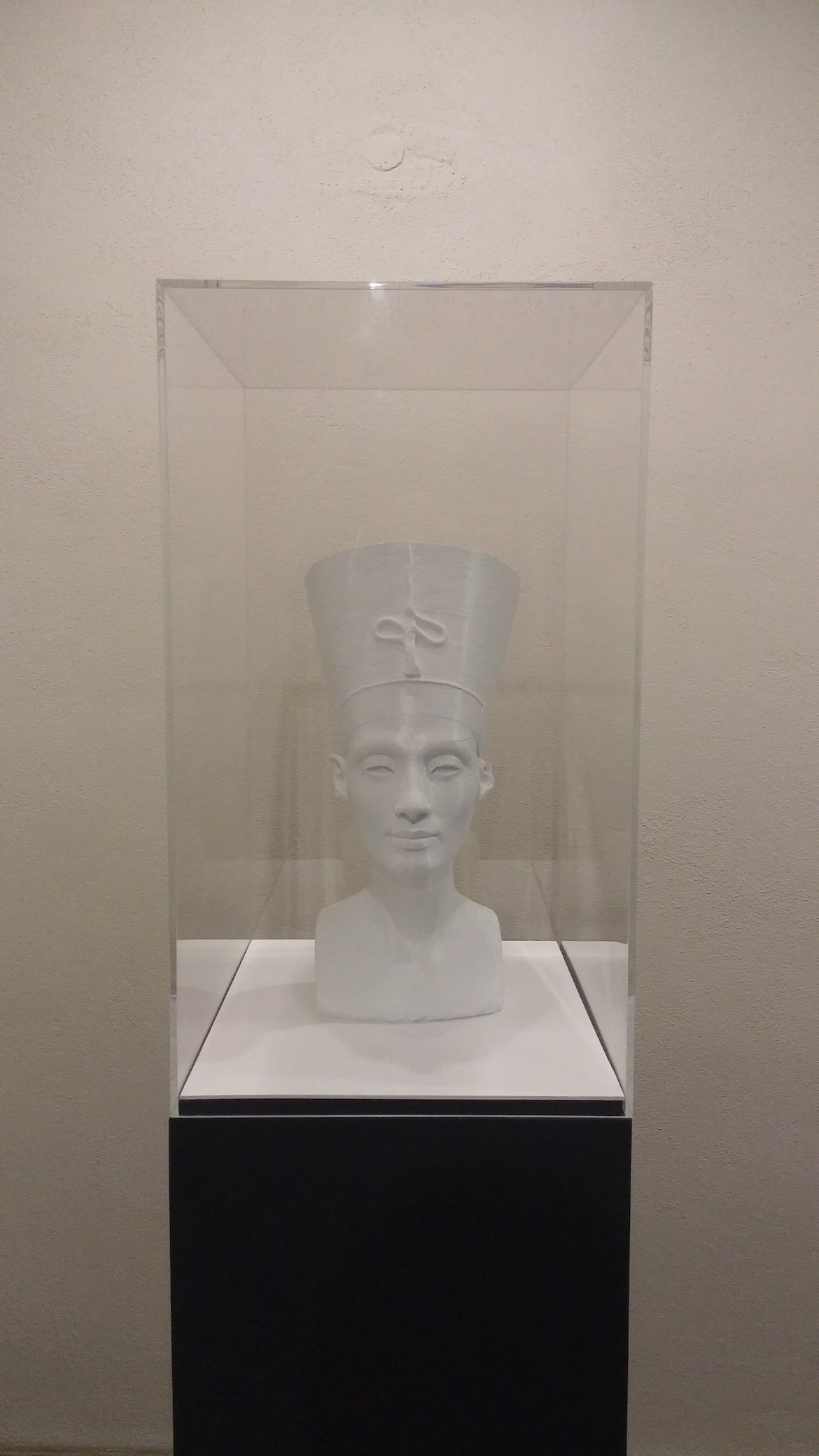 after reading several blog and tech articles about the 3d scanned Nefertiti (here and here) i decided to test it myself. I printed out a 1:1 replica of the bust (50cm, 70h, 3kg PLA, 0,2mm Layer height, 2 pieces in total) and scan it with the Kinect, as described in the articles.