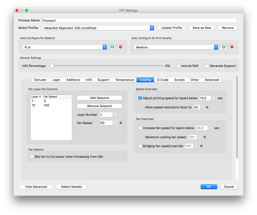 It is sometimes useful to increase the speed overrides in order to avoid filament jams.