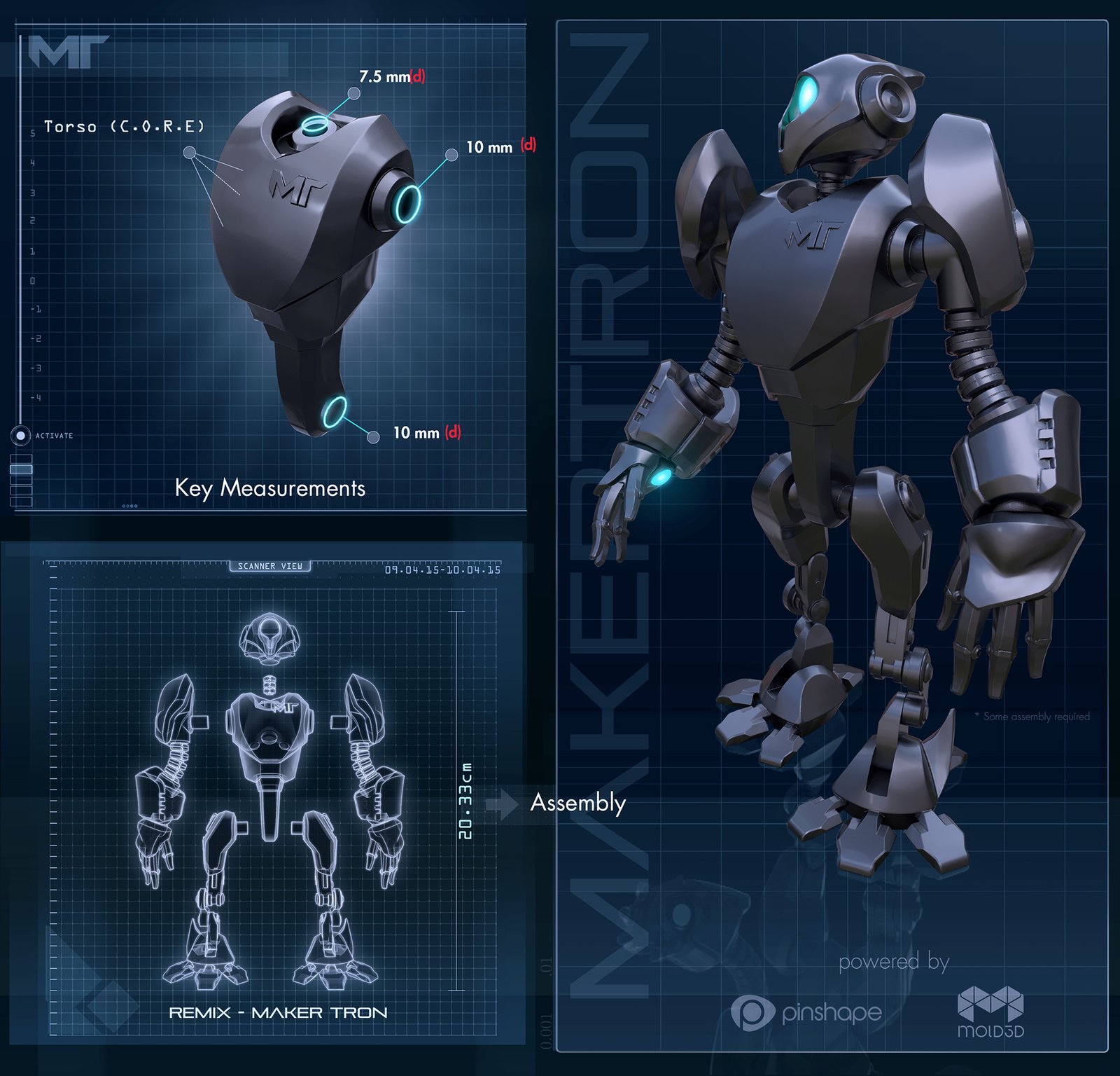 Pinshape, the 3D printing community and marketplace, has teamed up with Mold3D to host a galactic robot design contest. Designers are invited to create body parts for a friendly robot species, MakerTron, who needs humanity’s help to rebuild their destroyed population. Winners take home $3800+ in cool 3D printing prizes sponsored by XYZprinting, Pixologic™, Wacom and Mold3D Academy.