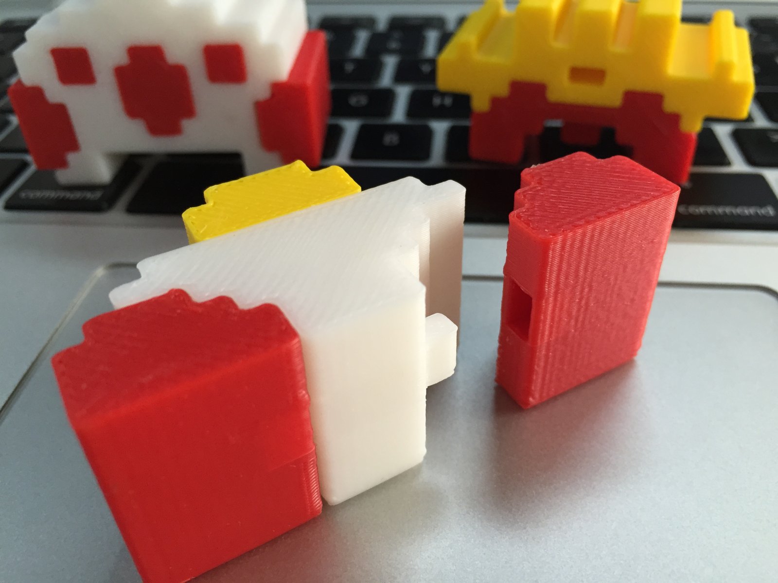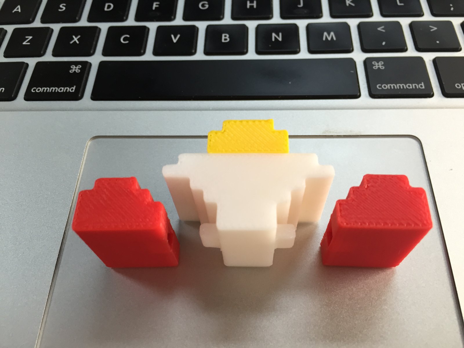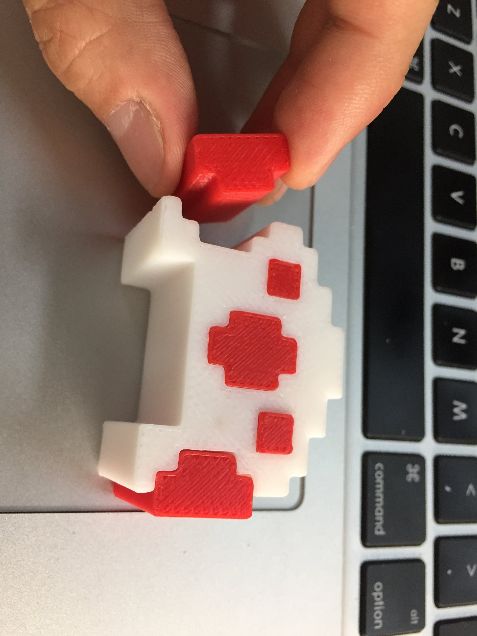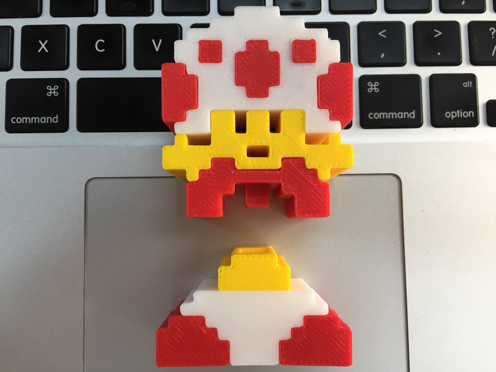 I upload all the .stl parts files to Shapetizer, and set them free to print by streaming to your 3D printer. So he keep searching the princess until 8 level be cleared. This mushroom baby is simple to design because it’s pixel. All you need is to click print, and print different parts with different color. Do not forget changing the filament.