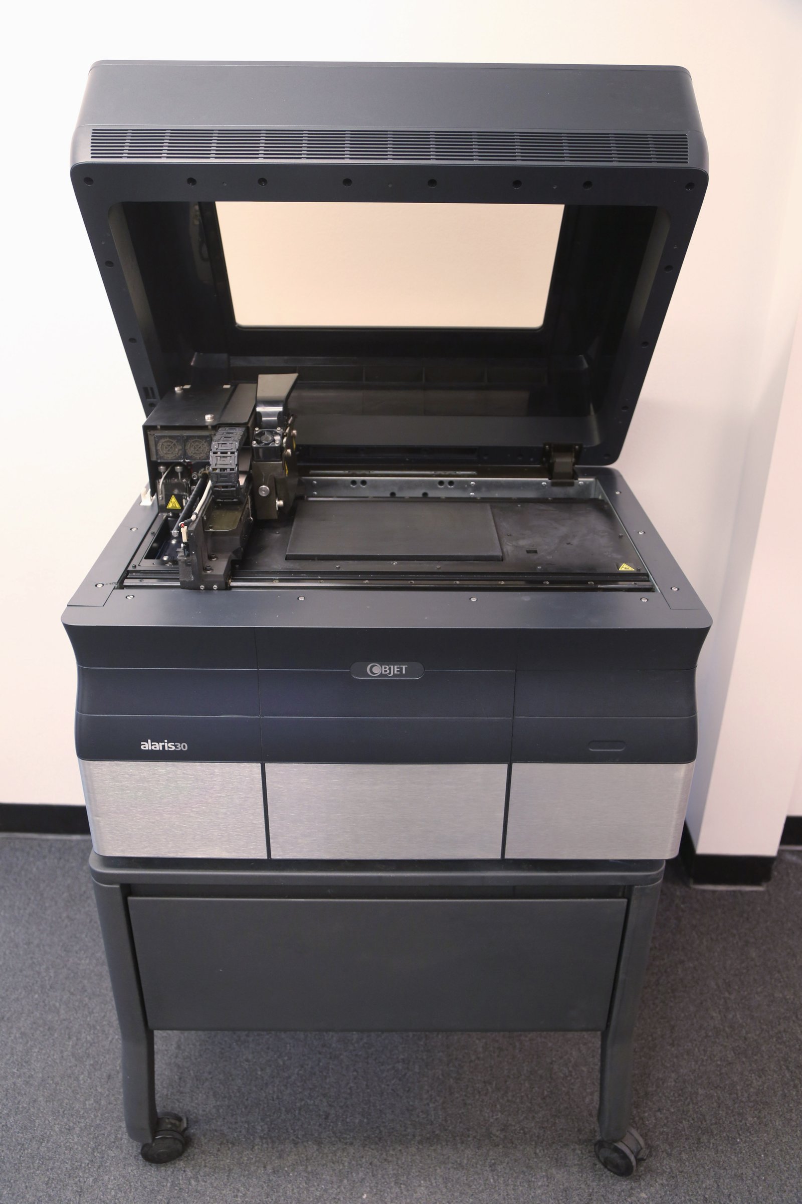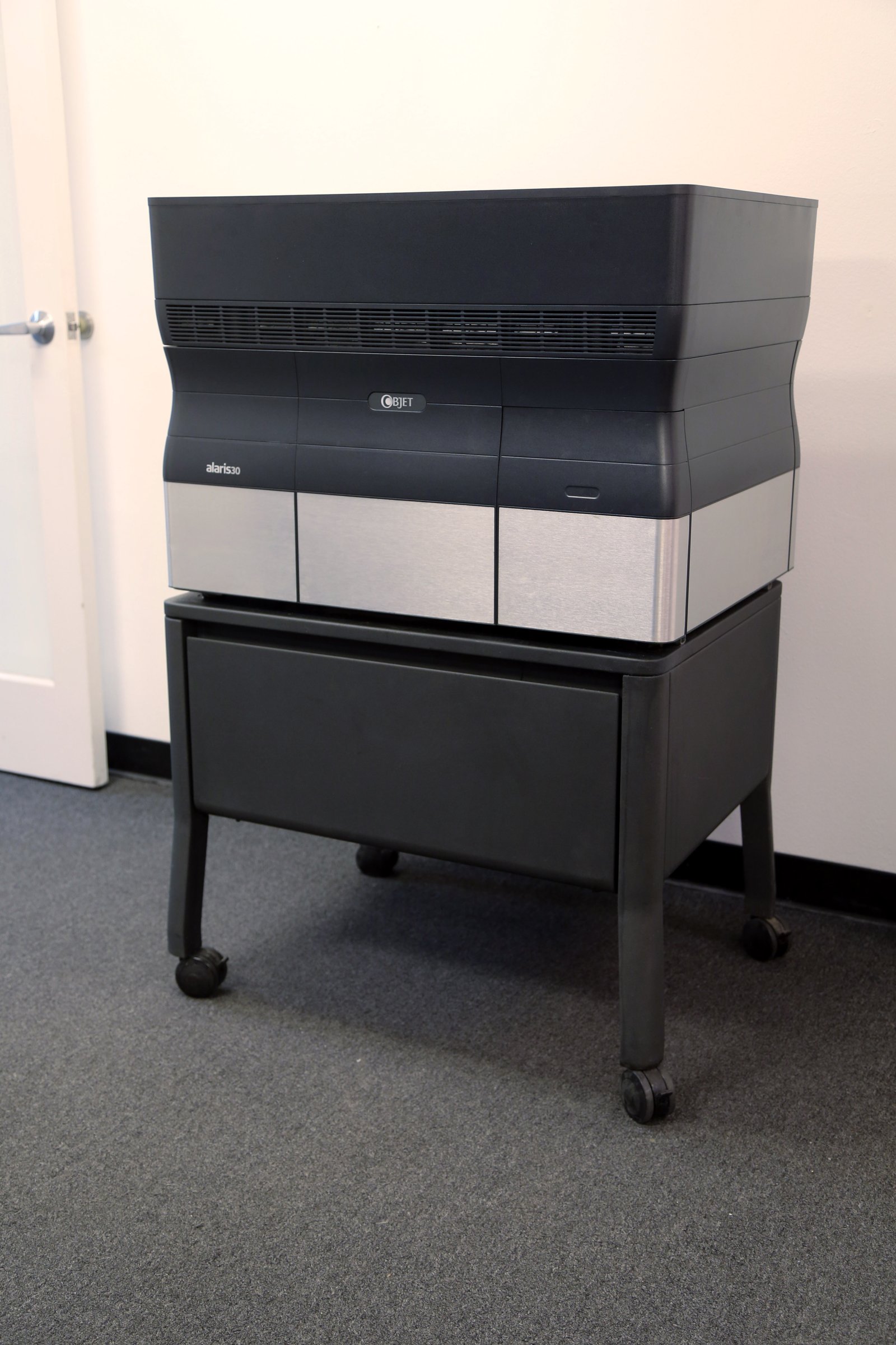 The Alaris 30 is a predecessor to the current Stratasys Objet 30/24, Prime, and Pro line of printers. It has the same form-factor and uses the same ‘VeroWhite 830/835’ and ‘Support 705’ material. This printer has always been under a service contract, and has been very well maintained. It was most recently serviced in December. It’s currently at a commercial address.
