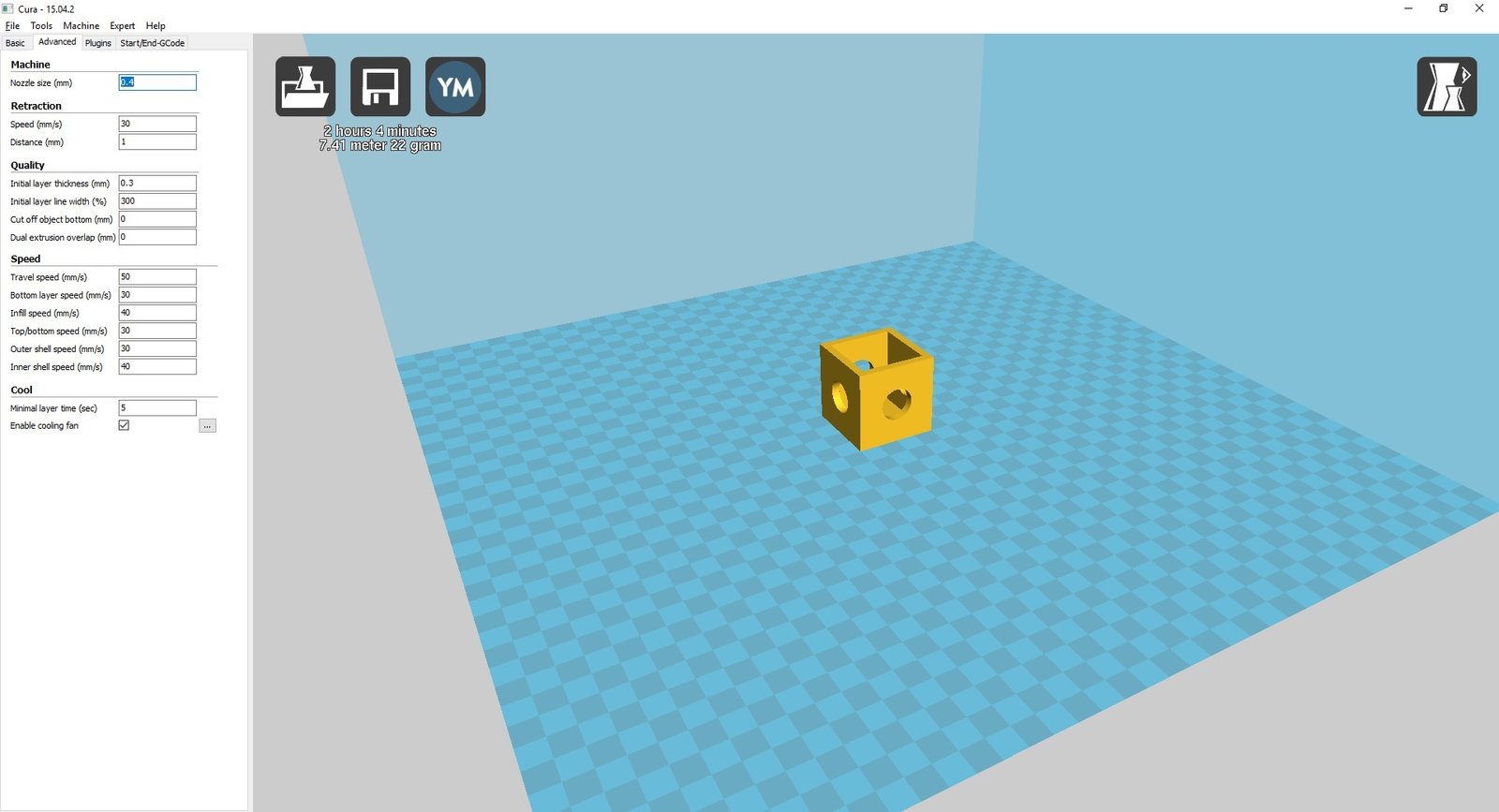 Hi Tamas, I am interested in your suggestions, I need some clarification. I am using Cura software I think the settings are different from your’s. I see a setting for flow in %. I have mine set at 100% There is a printing speed setting that I did lower from 50mm/s to 40mm/s. Is that too slow is that what you mean by extruding too much? Since it prints slower it will leave more plastic no? My printing temperature is set at 210 for PLA. I had quality set to 0.3, I’ve changed it to 0.2. For cooling I’m set at “minimal layer time of 5 sec”. I am using a bed temperature of 64DEGC. I have retraction set to combing off which is supposed to mean it retracts over holes. I doubled the size of the model I was concerned at the time I was having a problem with the print slipping after a couple of hours of printing. I think we’ve fixed that problem. I took some screen shots of my settings. Would you mind looking them over?
