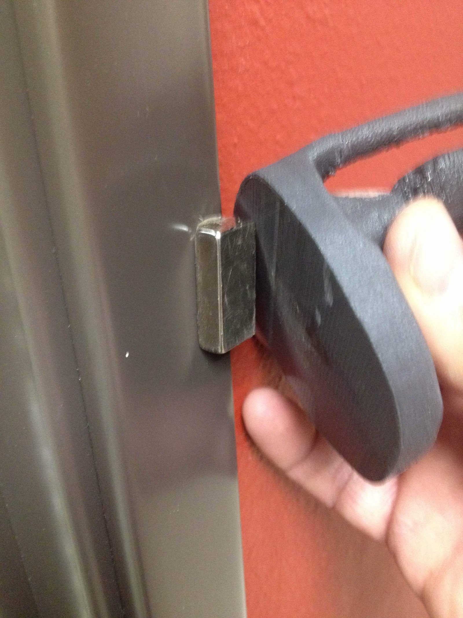 First image is it stuck to metal trim with a magnet.
