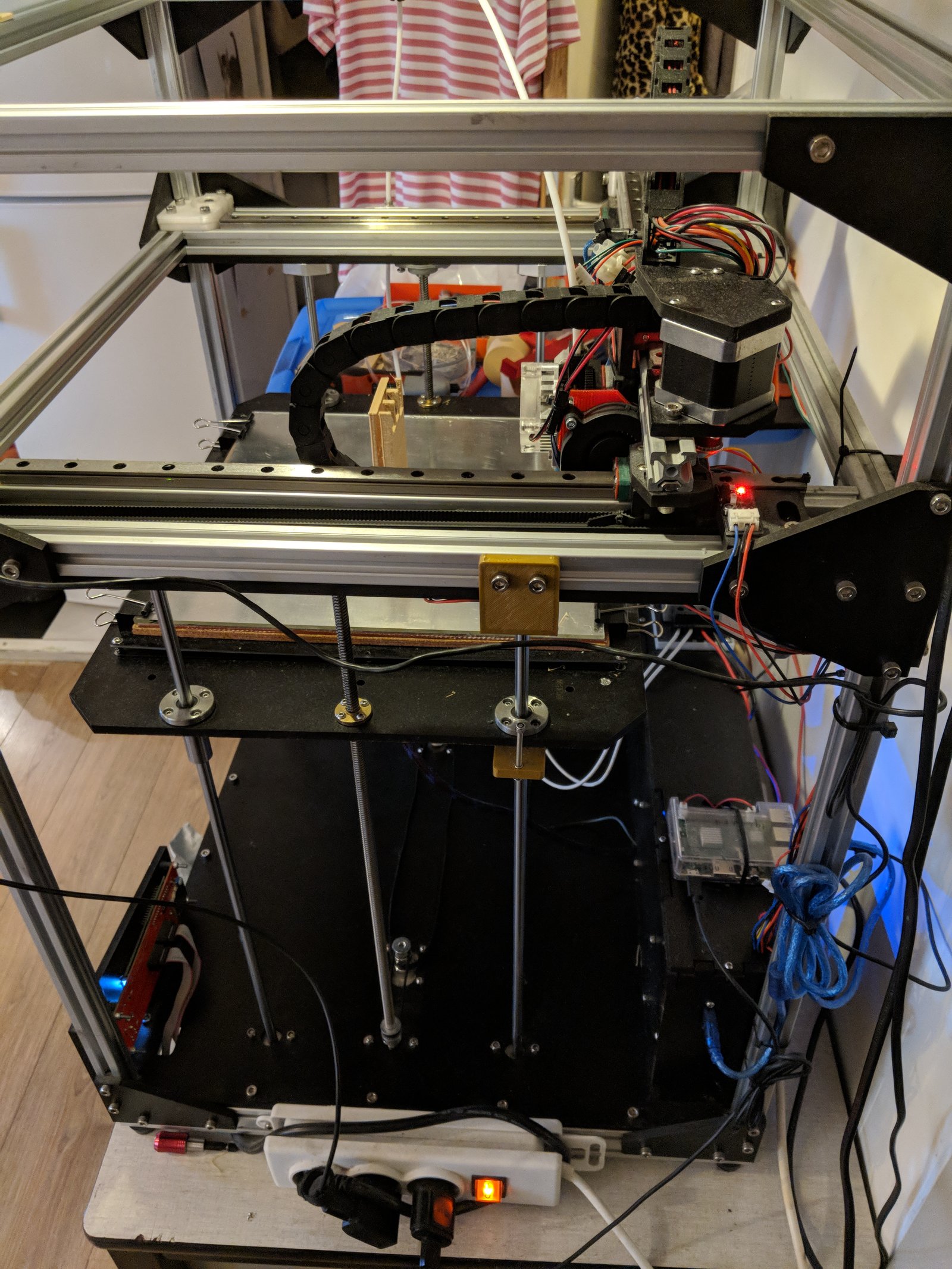 Has a RaspberryPi 2 with Octoprint connected and PSU control for remote on/off.
