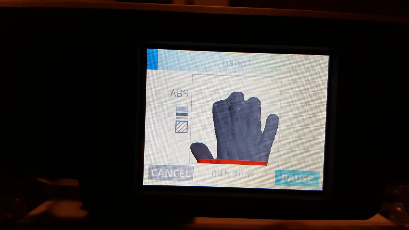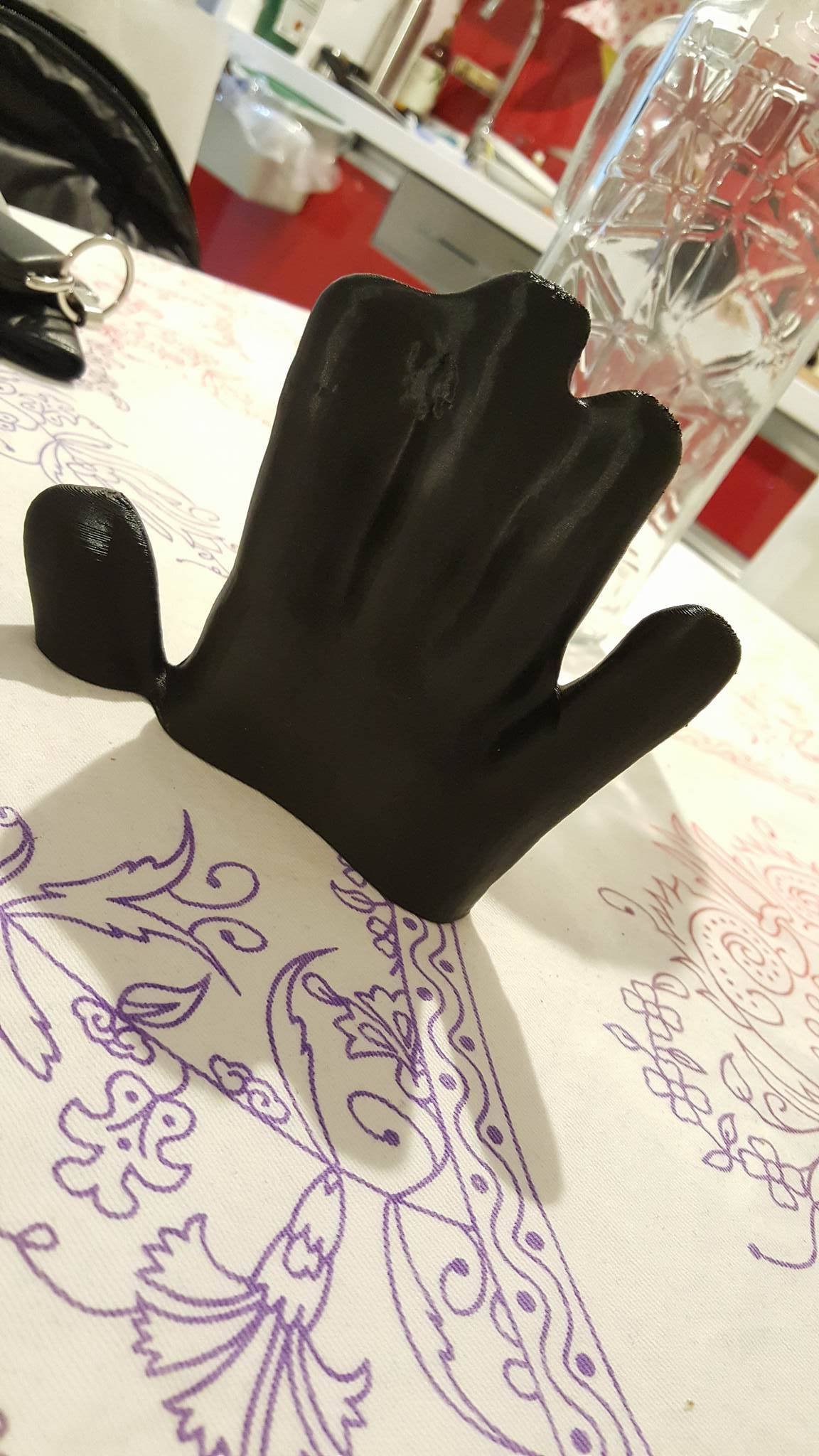 And second, hand1.stl, model of my darlings hand scanned with Sense, imported to catia, processed into solid part and saved as stl, which could not read by printer software. However no problem with Cubify Sculpt.