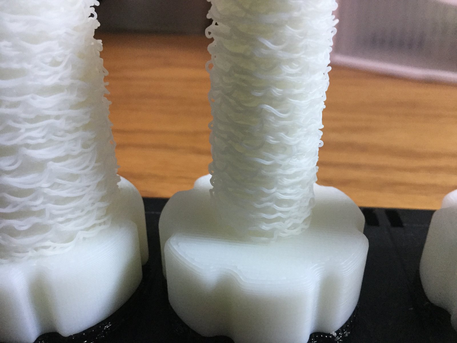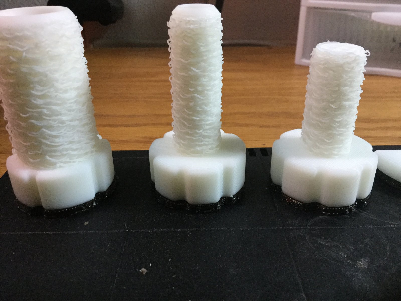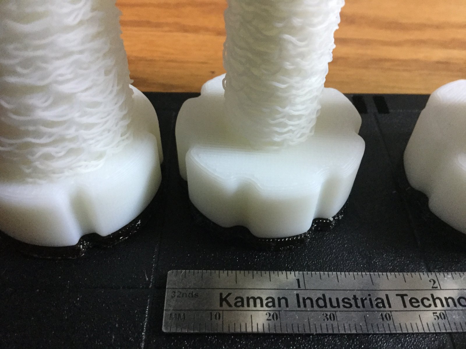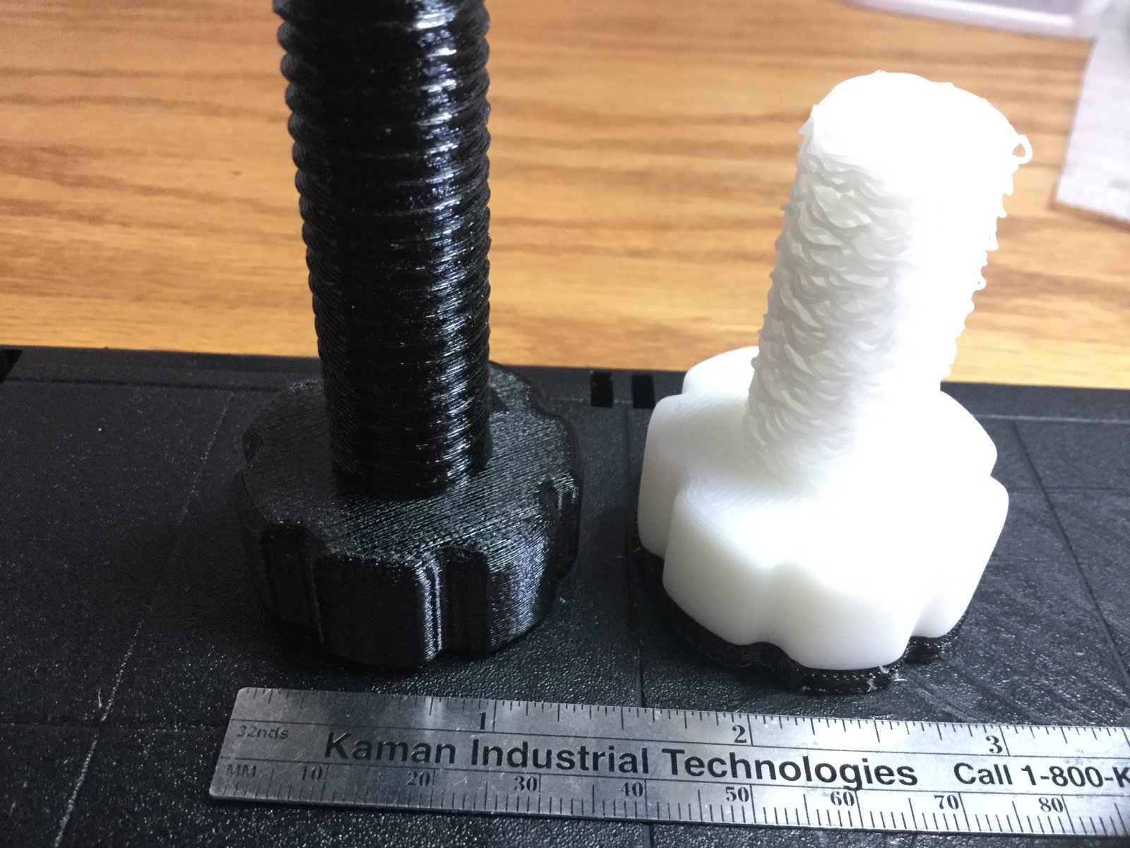 I have recently come across a printing problem I have never seen before. It has to do with printing threads on a Dimension sst768 and Insight 10.6 for software. As you can see with the images the base comes out perfectly but the threads are a hot mess! All I can think of is a slicing issue, but when I look at the sliced bolt it appears fine. Has anyone seen this before? I’m printing the same .stl on another printer without issue, so I’m at a loss. The images attached are of three different bolts printed separately.