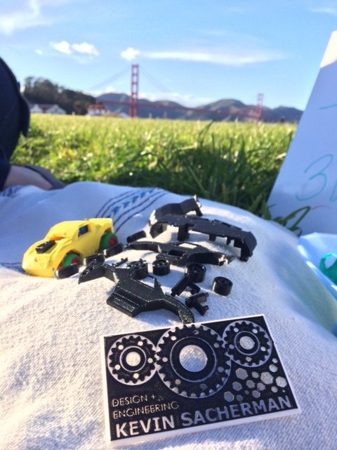 For the event, 3D Racers sent us 2 already assembled cars. One is guided by an Android app that I later gave to Kevin’s Hub @Kevinkevin (who printed out his own 3D Racer in SF). The other guided by a beta remote controller, now on its way to Austin, TX at SXSW. We chatted 3D printed toys over champagne overlooking the Golden Gate Bridge.