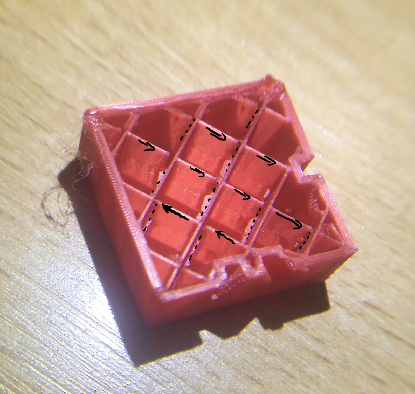 I tried a lot of speeds, accelerations and jerk settings. The test you see on the pictures are printed with 45mm/s and 1000mm/ss jerk is around 8-10. No slipping or grinding at the bowden extruder.