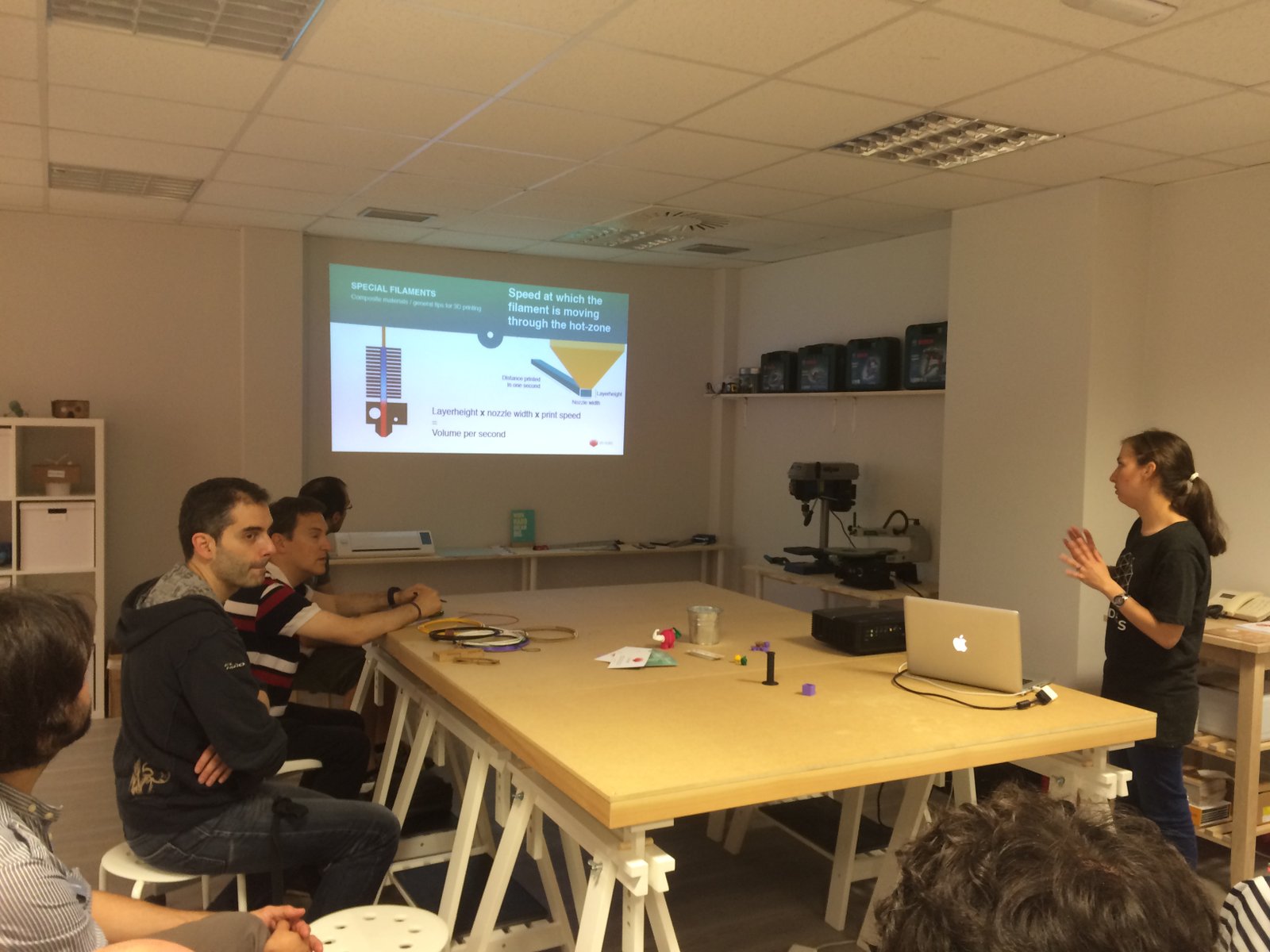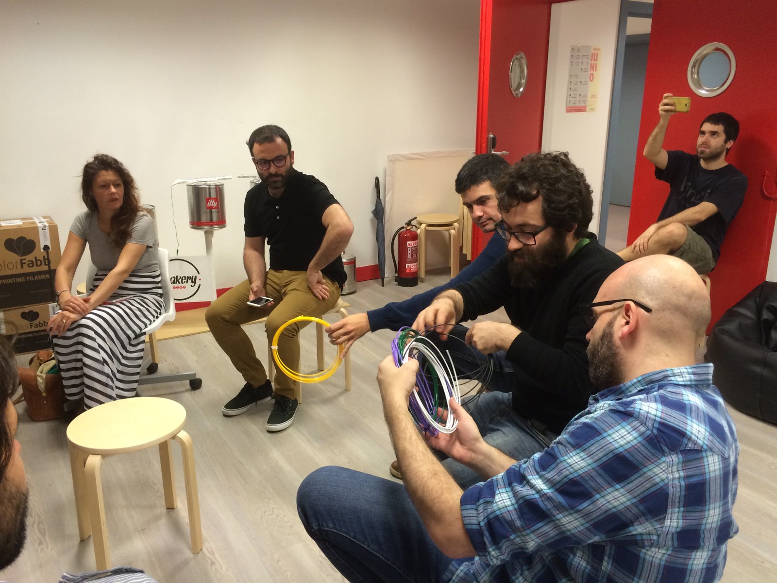 Cada participante se llevó un pack de muestras de material. Algunos ya tenían experiencia con estos materiales, otros no, y los hemos invitado a compartir su experiencia para que entre todos vayamos dando “feedback” y aprendiendo más y más. Si aún no lo has hecho, puedes hacerlo en este foro o en el de colorfabb: