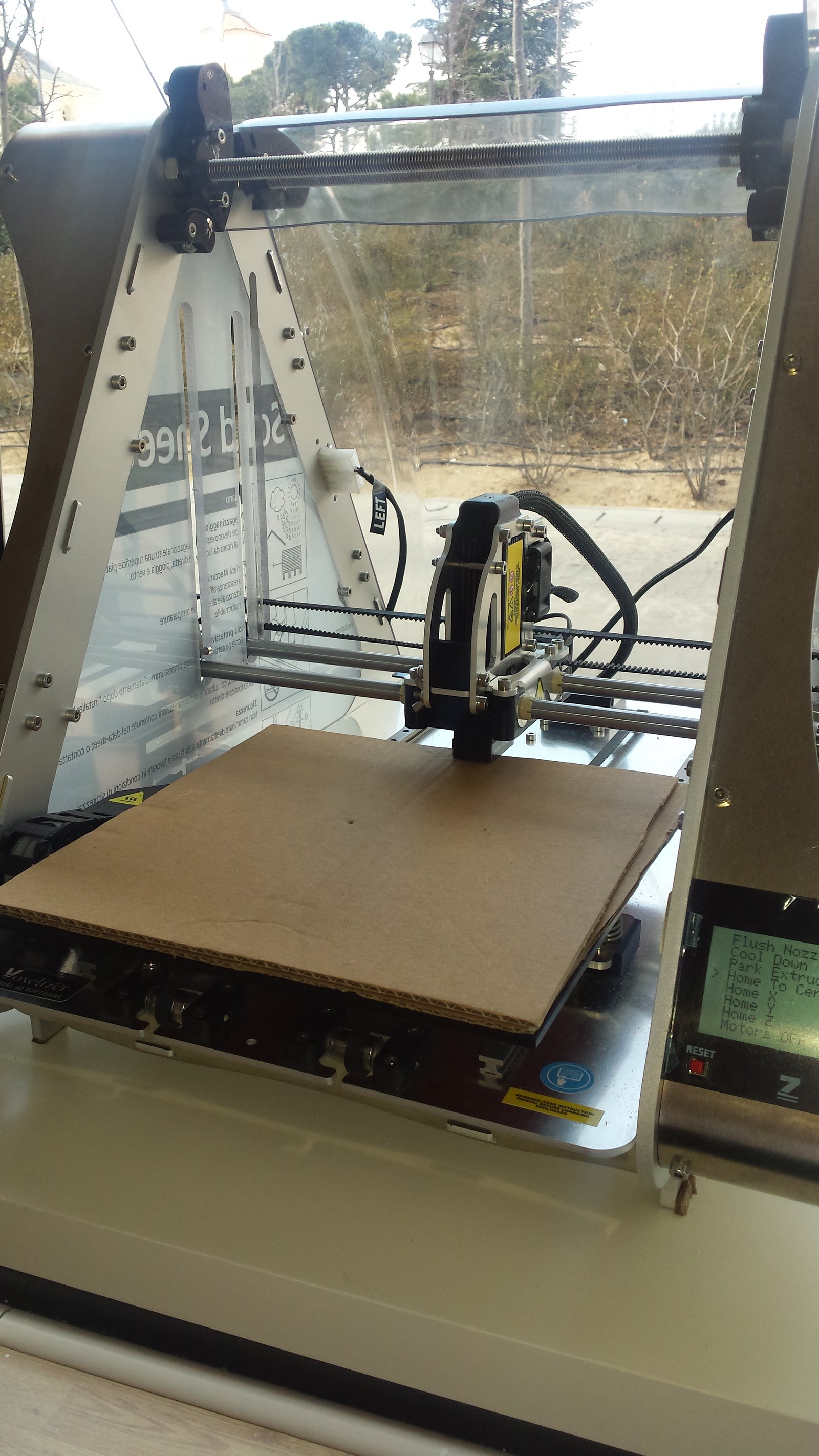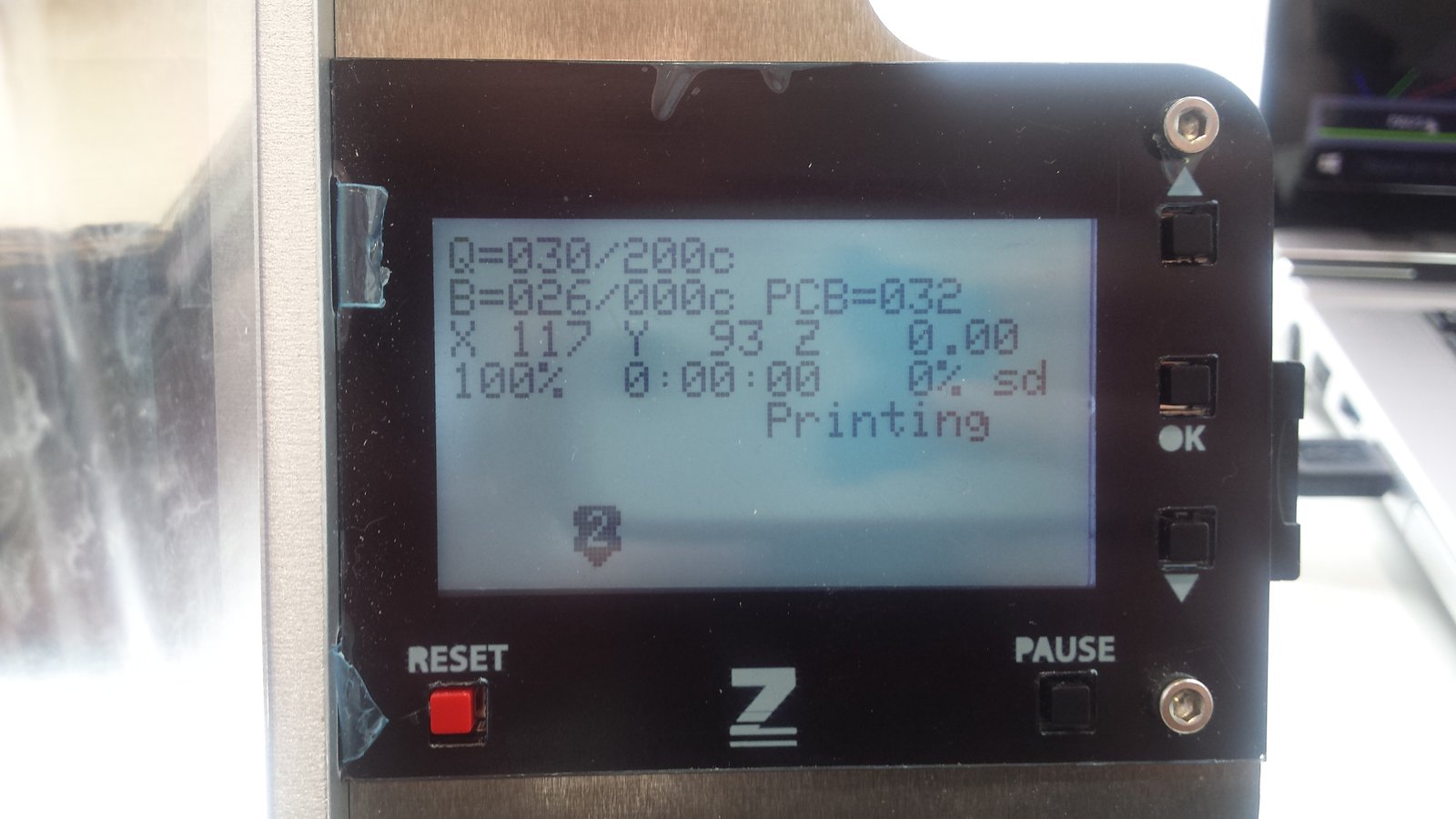 3. Once we try to print ,after reset and arm the laser (red light on), the head starts to move , as if it were printed the file, but the laser beam does nothing over the carboard. It is like if the laser was not enough powerful to cut or make the any work. I attach a photo from the INFO SCREEN during “printing” process