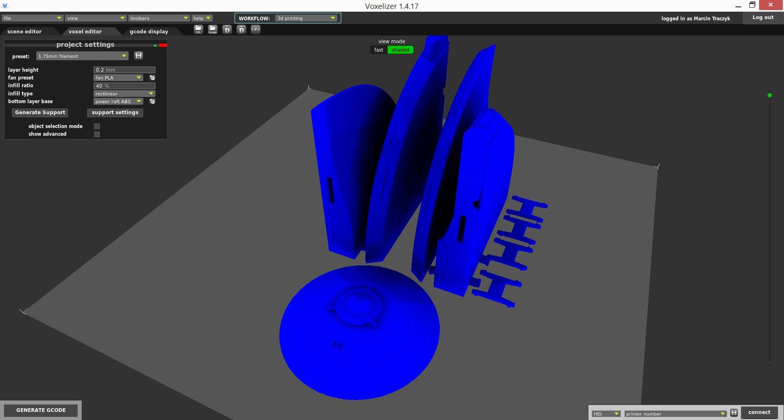 Mac users can now download Voxelizer 1.4.16 version for OSX. Windows users have just received the 1.4.17 version which significantly improves the quality of the prints as well as reduces the amount of filament extruded on tight turns. Use auto update at launch or visit Voxelizer download page for details.
