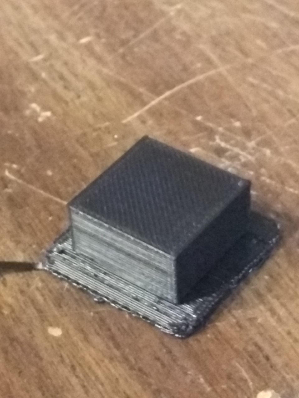 I just printed a test cube and you can see where it stopped extruding when it was building the raft a couple of times. First on the bottom, then again as it was about to start printing the cube. The cube itself printed well aside from some slump from poor support where the raft hadn’t been fully printed.