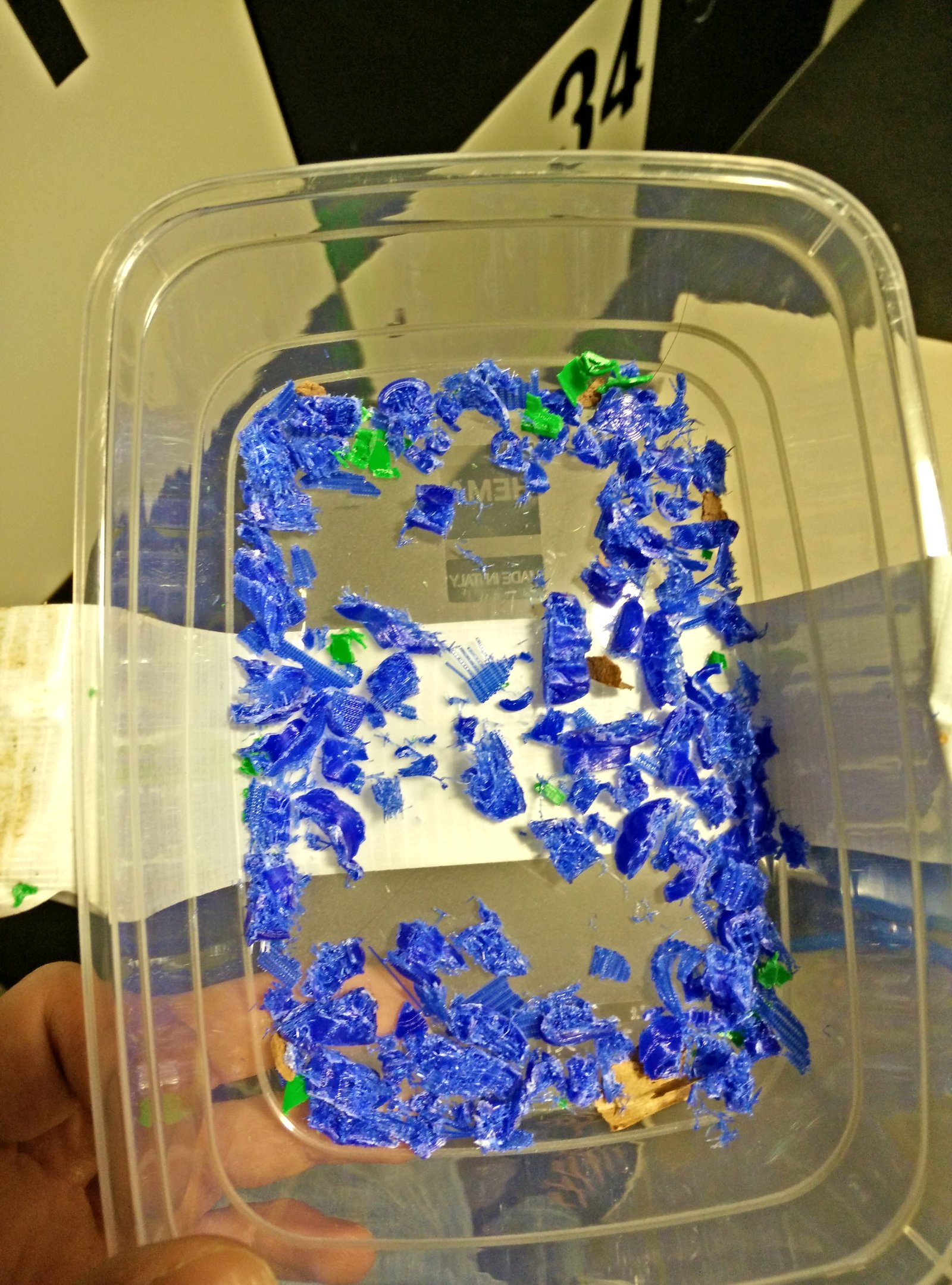 Some first shredding rounds show that the Filamaker can definitely reduce the size of some of the fiercest Marvins. However one thing we will still need to find out is whether the pieces are shredded small enough to be able to use them in the Filabot. But those are worries for a later post