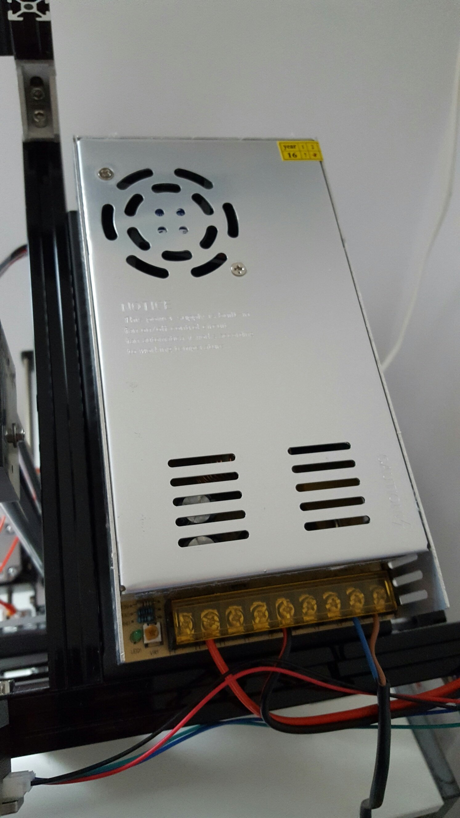 Electrically this is very dangerous, especially at our 240V rather than the 110V the Americans use. The power supply comes with simple terminals to connect the mains lead to. This is much like wiring a plug - strip the wires and connect them to the terminals. Except on this printer thereās no strain relief for the cable (so the only thing stopping the live wires pulling out is the terminals themselves), despite the power supply being in a metal case and having an earth terminal thereās only a two wire lead supplied (ie no earth), the terminals arenāt fully enclosed and the conductors look vastly under the 0.75mm2 stated. Any one of those would make this extremely dangerous and illegal to sell in the UK. I suspect the only reason they can get away with it is that itās sold as a kit. If you buy one of these kits you MUST use a replacement lead with the correct size wires and connect up the earth terminal. You MUST also provide a strain relief to the cable and enclose the power supply terminals. Thatās the bare minimum. If not thereās a very serious risk of the whole metal frame getting live. An RCD is also a sensible precaution.