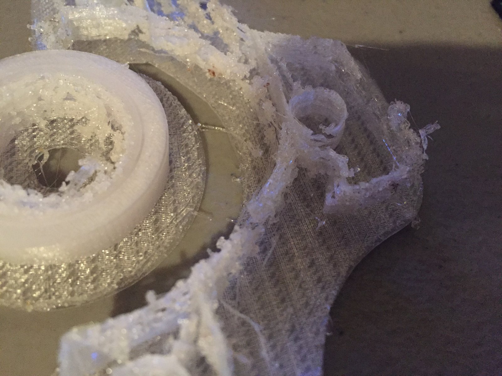 The noob in me is probably coming out and Im sure there is a simple solution to this problem, but I’m banging my head against a wall. I recently bought a monoprice maker select V2 and it has worked great so far. I bought the printer to help print prototypes of a part that i am working on before we start mass producing them. When I printed with standard PLA it worked great. I would come across typical beginner problems and learn whats wrong and move on. Now I am moving to TECHG PETG filament for the added strength and flexibility. The first print I did with petg worked great. But now everytime I try to print something I get this snowflake effect where the filament gets flaky on the support and just becomes a mess. The first layers come out fine and adhesion isn’t a problem. I’ve messed around with different temperatures and cooling but can’t get any results. I’m really stuck with this one and it’s frustrating as it is holding the prototype phase up. Need help ASAP. I tried taking some photos to better explain what is happening cause I don’t really know how to describe it. What am I doing wrong??